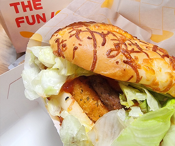 우리 동네 롯리 치즈스틱은 내가 먹어본 롯리중 최상위권 탑티어로 매기기 때문에, 모짜치즈패티도 당연하게도 맛있었다. 빵도 일반빵 아니라 뭔가 맛있었고… 토마토소스가 "킥"이네요. 치즈랑 비프의 조합이라 느끼할 텐데 소스가 잡아줘서 그렇게까지 물리지 않고 금방 다 먹었다. 맛은 있었는데 다 먹고 서치하다가 누가 고급 피자빵 맛이래서 더 이상 제정신으로 못 보게 됨