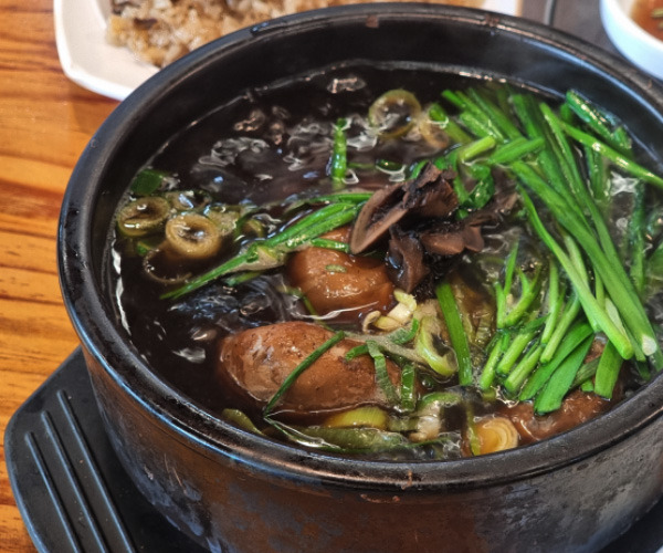 능이버섯 삼계탕인데 난 버섯을 못 먹어서…(ㅎ) 근데 국물도 닭도 살짝 까맣게 나오는데 짭잘하고 누룽지 맛처럼 구수해서 좋음. 이게 버섯 향일까? 닭고기 싹싹 발라먹고 떡밥도 국물 적셔서 먹으니 마쉿당… 만육천원 꽤괜소비 굿