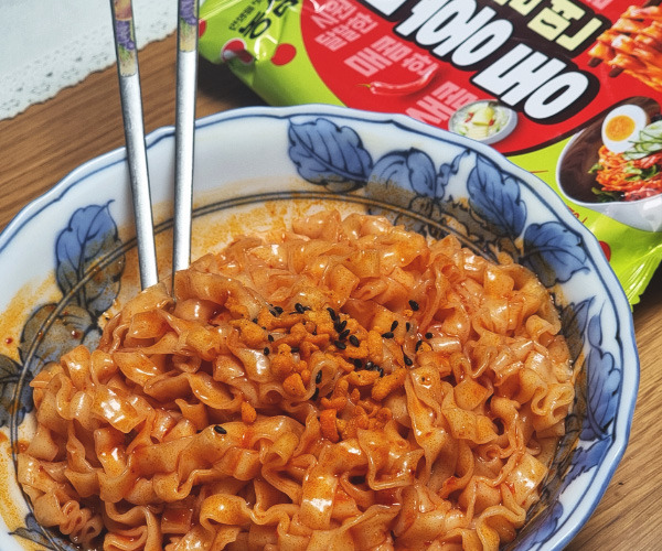 조리법은 그냥 일반 인스턴트 비빔면이랑 똑같고, 면이 칼국수면이라 끓이기 전에 생라면처럼 먹을 수는 없다(ㅋㅋ). 무난하게 칼국수 비빔면 맛, 맛있음. 위에 뿌리는 김치튀김후리카케?같은 거 바삭바삭하게 씹혀서 재밌다. 난 라면 끓일때 살짝 덜 익혀서 꼬들하게 먹는 파라 이번에도 비슷하게 조리했는데 칼국수면이라 그런가 좀 더 푹 익히면 더 맛있을듯? 열 완전 안 빼고 좀 미지근하게 먹어도 괜찮을 것 같고, 아껴 먹어야지